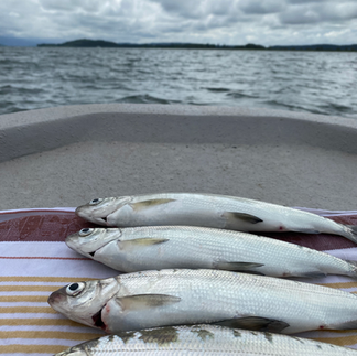 Nachdem Roger wieder seine Ruten montiert hat, schepperte es bereits wieder bei Ihm. Die zweite Felche!! Ich freute mich für Roger, allerdings wollte ich nun auch endlich eine Felche fangen. Ich entschied mich, nun auch in der Schwebe zu fischen und konnte direkt einen Biss verzeichnen. Anschlag, und der Fisch sitzt. Unglaublich wie viel Power die Felchen vo Bielersee haben, besonders an den leichten Felchenruten. Auch dieses Mal war es eine wunderschöne Felche. So darf das Felchenfischen auf dem Bielersee gerne weitergehen. Und ja, es ging so weiter. Teilweise drillten wir Fisch um Fisch... Alles wunderschöne Felchen. Der Wind zog aber immer mehr über den Bielersee auf und machte das Felchenfischen mit der Hegene fast unmöglich. Frühzeitig haben wir bemerkt, dass es wohl nicht besser wird und packten unsere Sachen. Um 10:45 kamen wir bereits wieder beim Hafen an. Die Felchen vom Bielersee haben sich an diesem Tag von ihrer Besten Seite gezeigt. So macht das Felchenfischen richtig Freude und ich hoffe, Roger und ich erleben noch viele dieser Tage auf den Berner Seen.